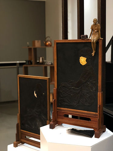 Fanson Lam used “school uniform”, “student”, “screen”, and “turn” as the themes of his sculptures to illustrate his understanding of “memory”. The work incorporates a table screen made of Acacia confusa by contemporary artisan Jacky Lam. He also created other contemporary everyday objects with the bodiless lacquer technique, a traditional lacquerware-making technique used for statues of gods and Buddha. Jacky hopes to recollect his memories of the time, people, places and things in Hong Kong through this work.